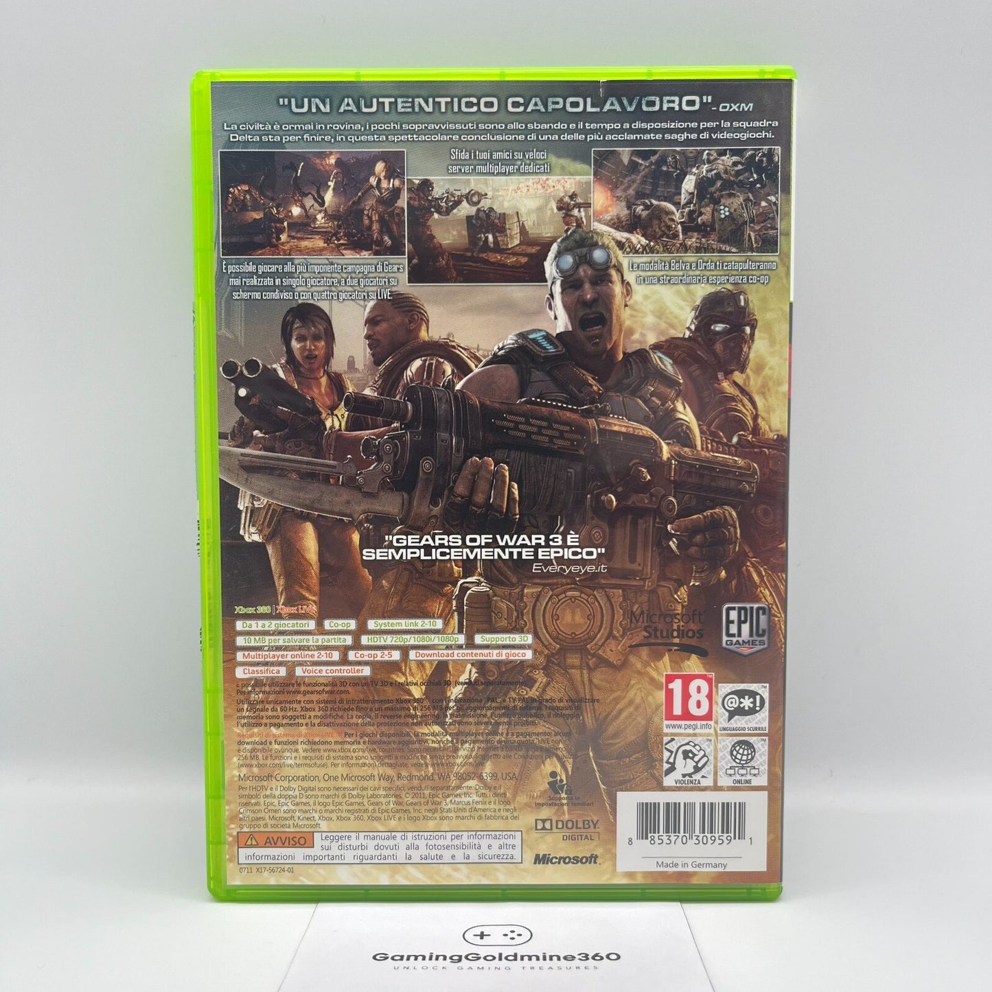 Gears of War 3 Xbox 360 Italiano Completo PAL EpicGames Microsoft COME NUOVO